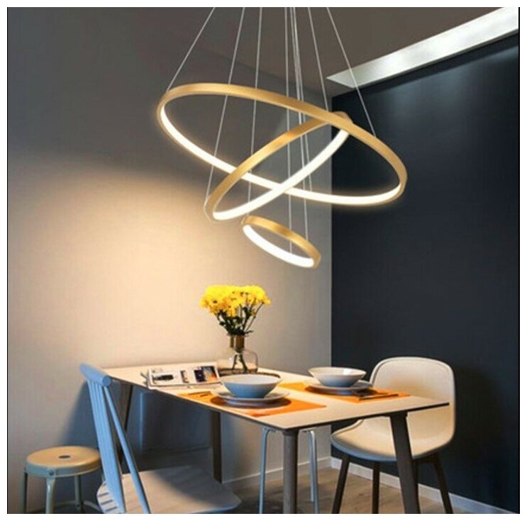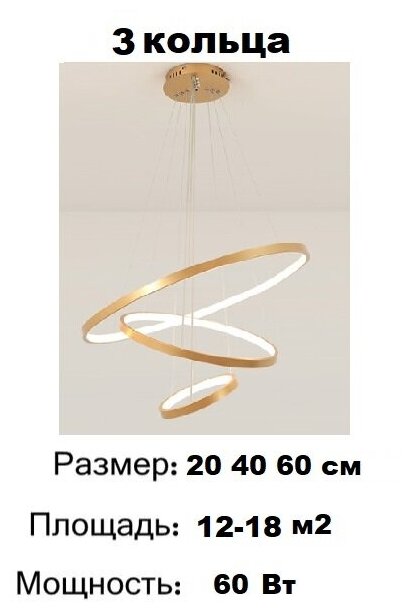 Подвесная светодиодная люстра кольца 20*40*60 золотая (V In): сравнение цен, характеристики, фото, актуальное наличие и цены.