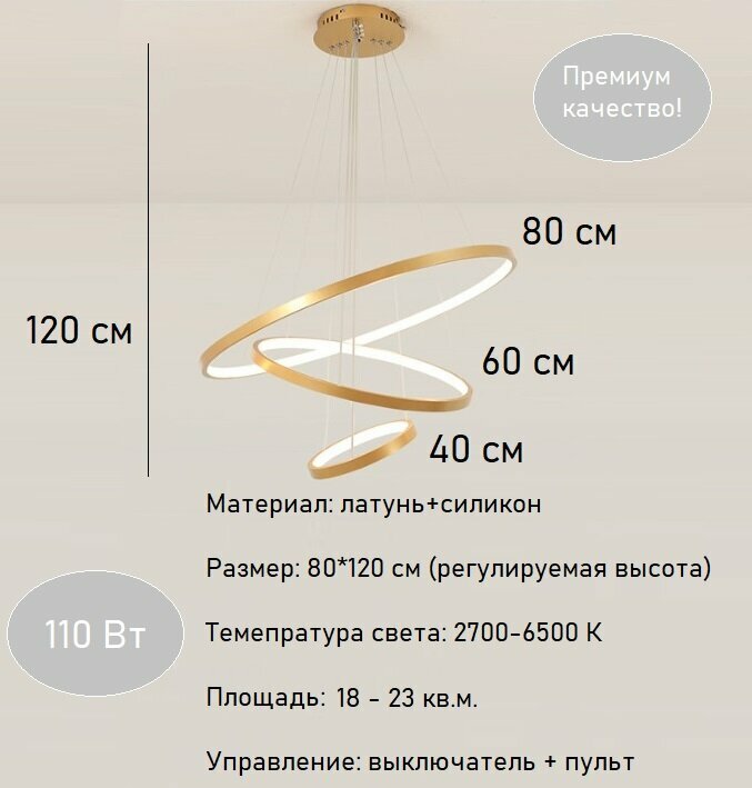Подвесная светодиодная люстра кольца 40*60*80 золотая (V In brass): сравнение цен, характеристики, фото, актуальное наличие и цены.