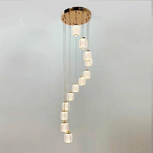 Подвесная светодиодная люстра золотая, регулируемая высота, дизайнерский светильник, LED, 144W