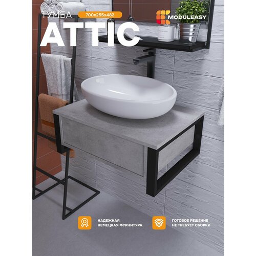Подвесная тумба под раковину в ванную 70х48 см ATTIC, цвет Бетон светлый, MODULEASY Ц0000037799: сравнение цен, характеристики, фото, актуальное наличие и цены.