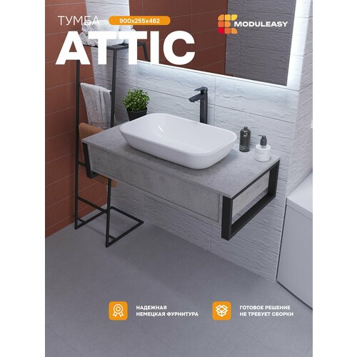 Подвесная тумба под раковину в ванную 90х48 см ATTIC, цвет Бетон светлый, MODULEASY Ц0000037809: сравнение цен, характеристики, фото, актуальное наличие и цены.