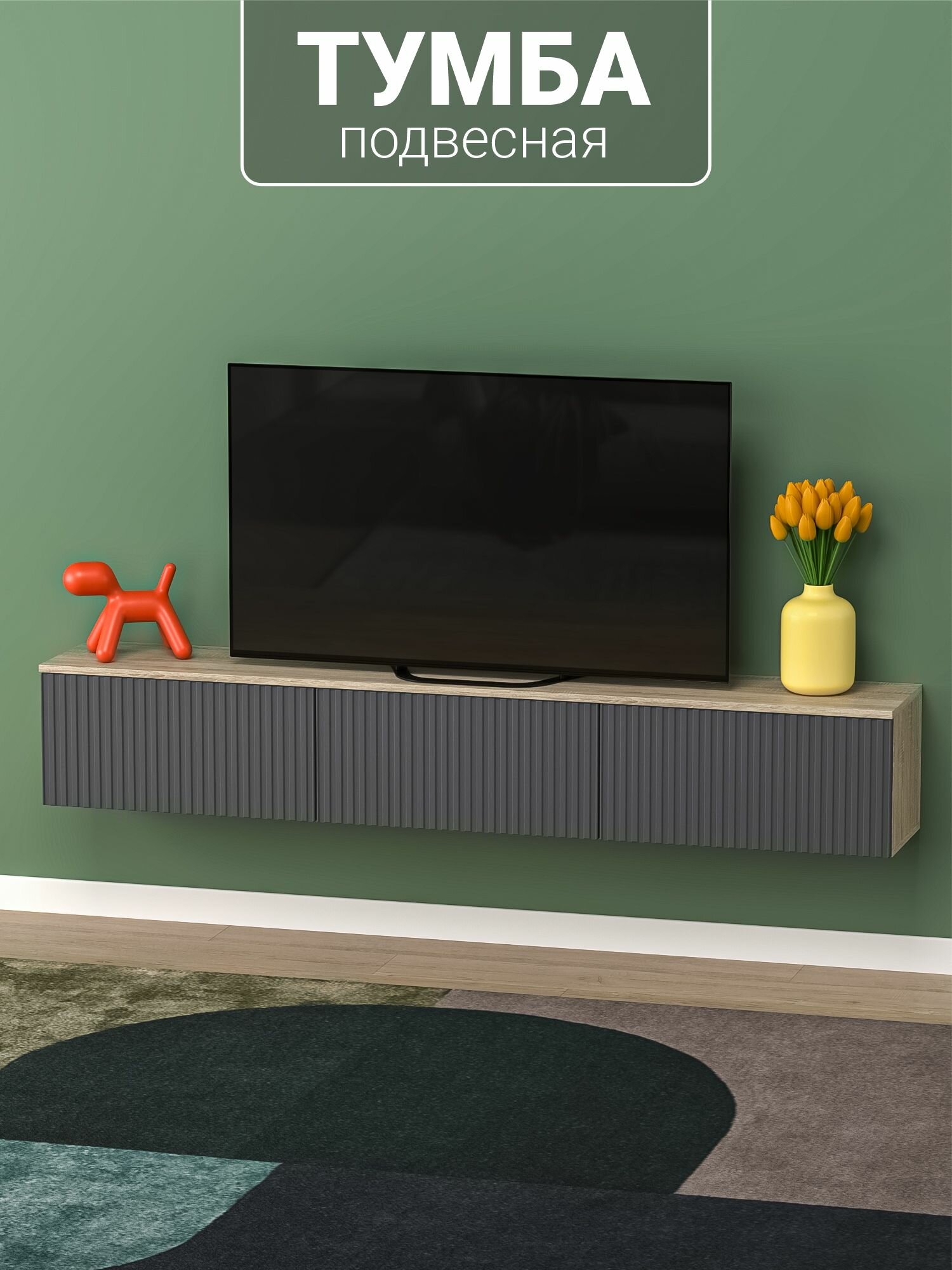 Подвесная тумба под телевизор с МДФ фасадами и прочными навесами 180х30х30 см: сравнение цен, характеристики, фото, актуальное наличие и цены.