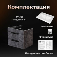 | Подробная комплектация | Тумба, раковина, фурнитура, инструкция |