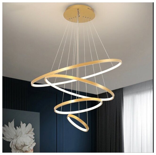Подвесная вертикальная светодиодная люстра кольца 20*40*60*80 золотая (V In): сравнение цен, характеристики, фото, актуальное наличие и цены.