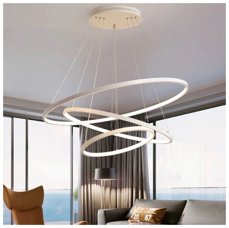 Подвесная вертикальная светодиодная люстра кольца 20*40*60 белая (V In): сравнение цен, характеристики, фото, актуальное наличие и цены.