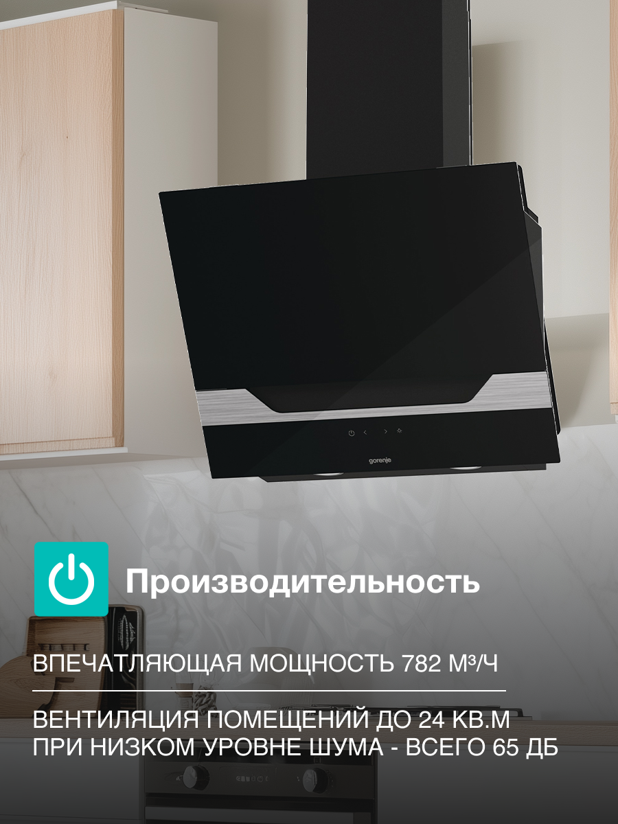 Сенсорное управление для удобства использования Сенсорное управление на вытяжке Gorenje WHI646E7BP обеспечивает простоту и удобство в использовании. Вы сможете быстро и легко настроить работу вытяжки, а также контролировать ее работу в режиме реального времени.
