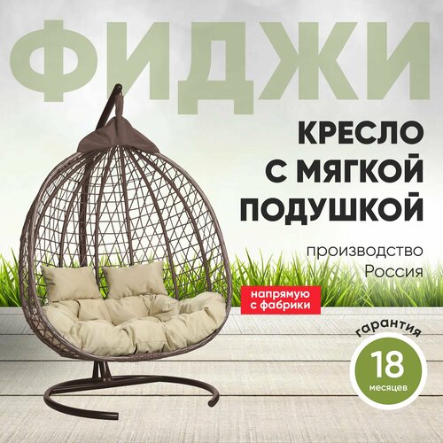 Подвесное двухместное кресло-кокон фиджи коричневый (бежевая подушка, полиэстер): сравнение цен, характеристики, фото, актуальное наличие и цены.