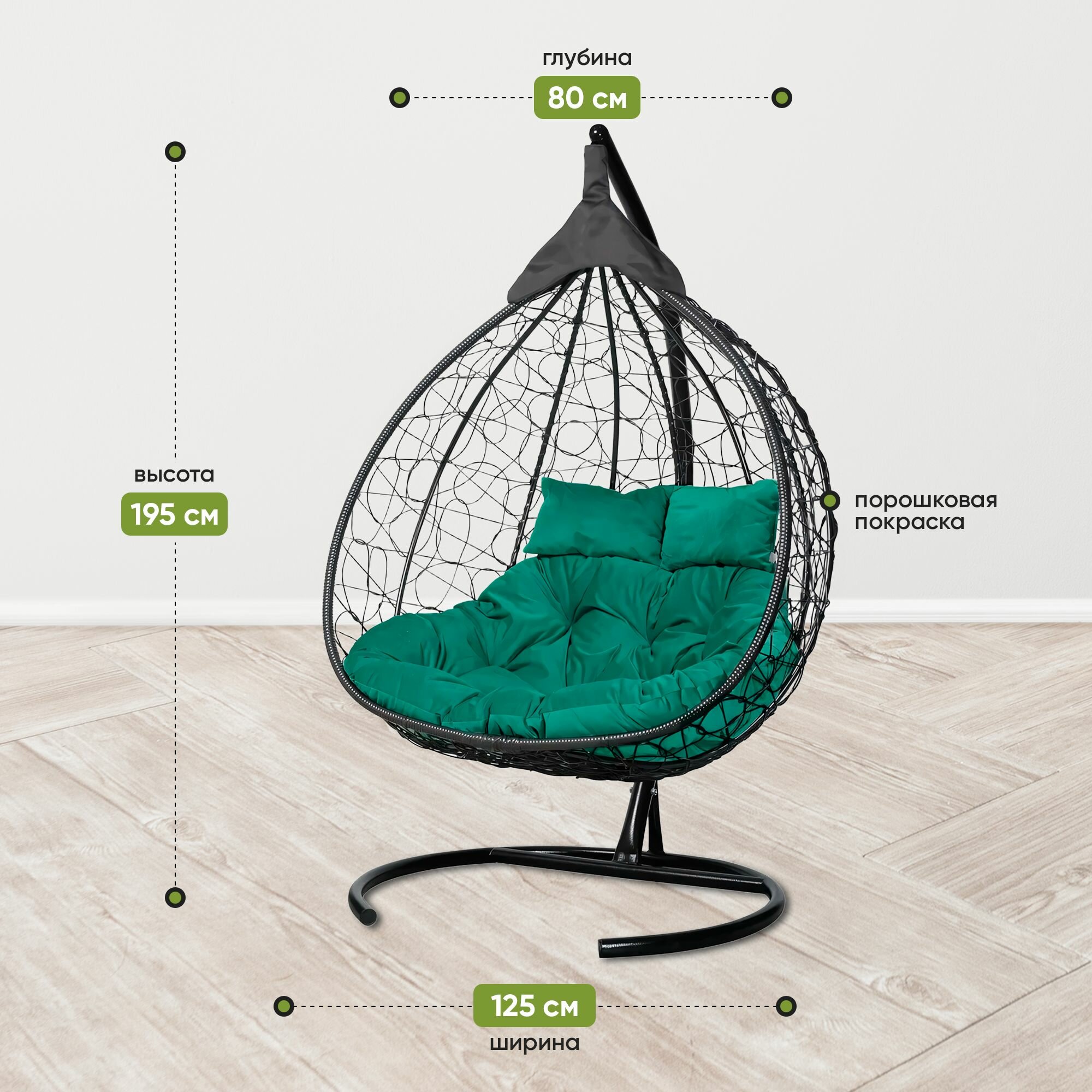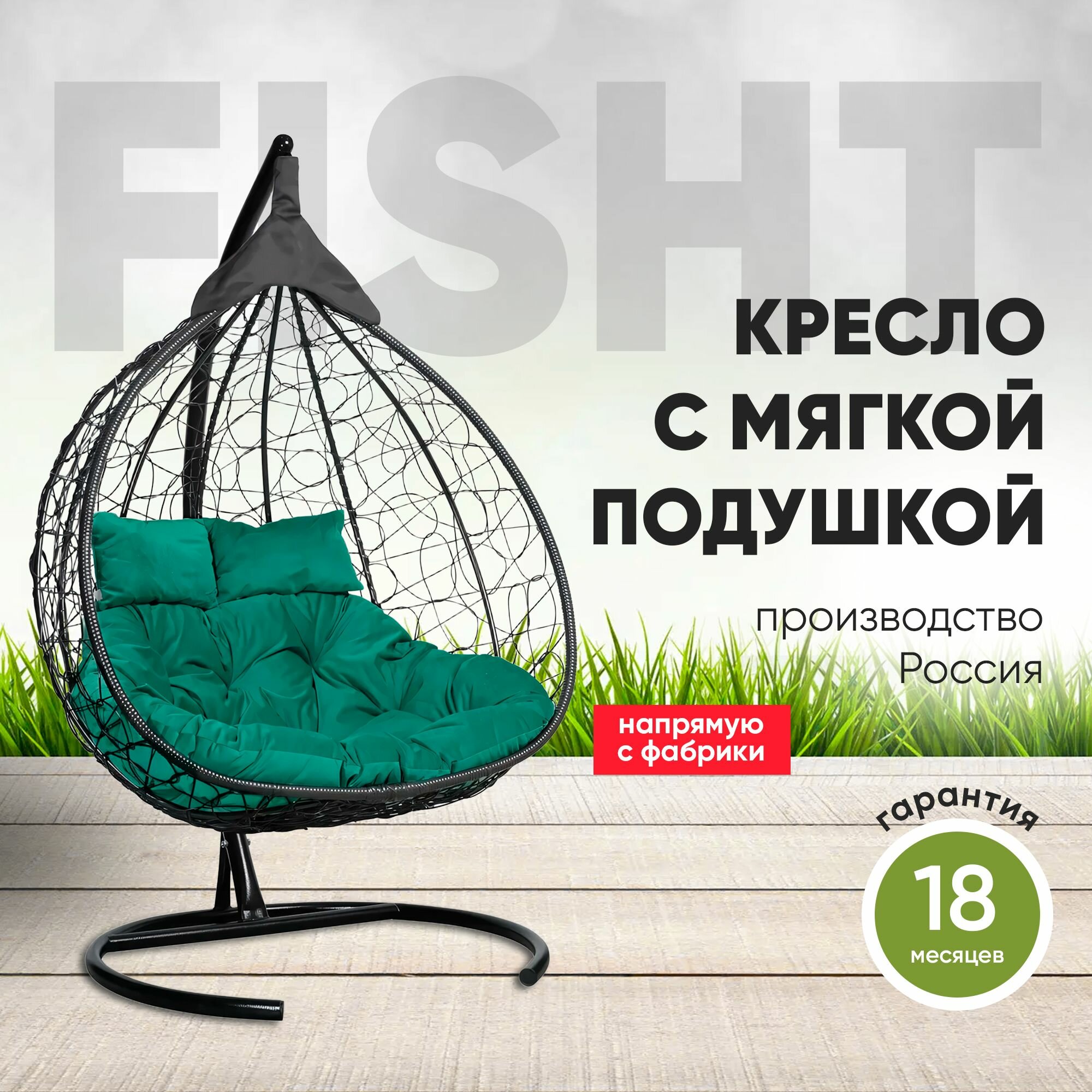 Подвесное двухместное кресло-кокон FISHT черный (зеленая подушка, полиэстер): сравнение цен, характеристики, фото, актуальное наличие и цены.