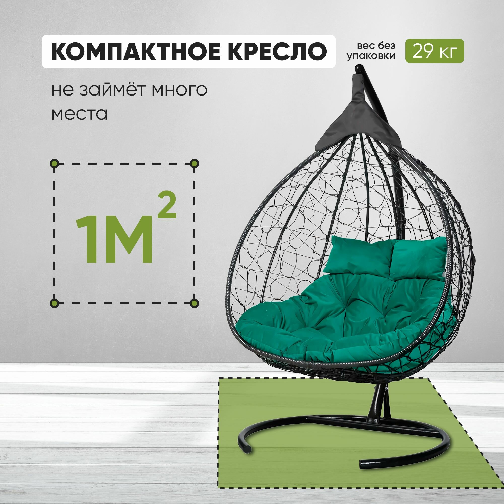 Купить Подвесное двухместное кресло-кокон FISHT черный (зеленая подушка, полиэстер) с доставкой по всей России.