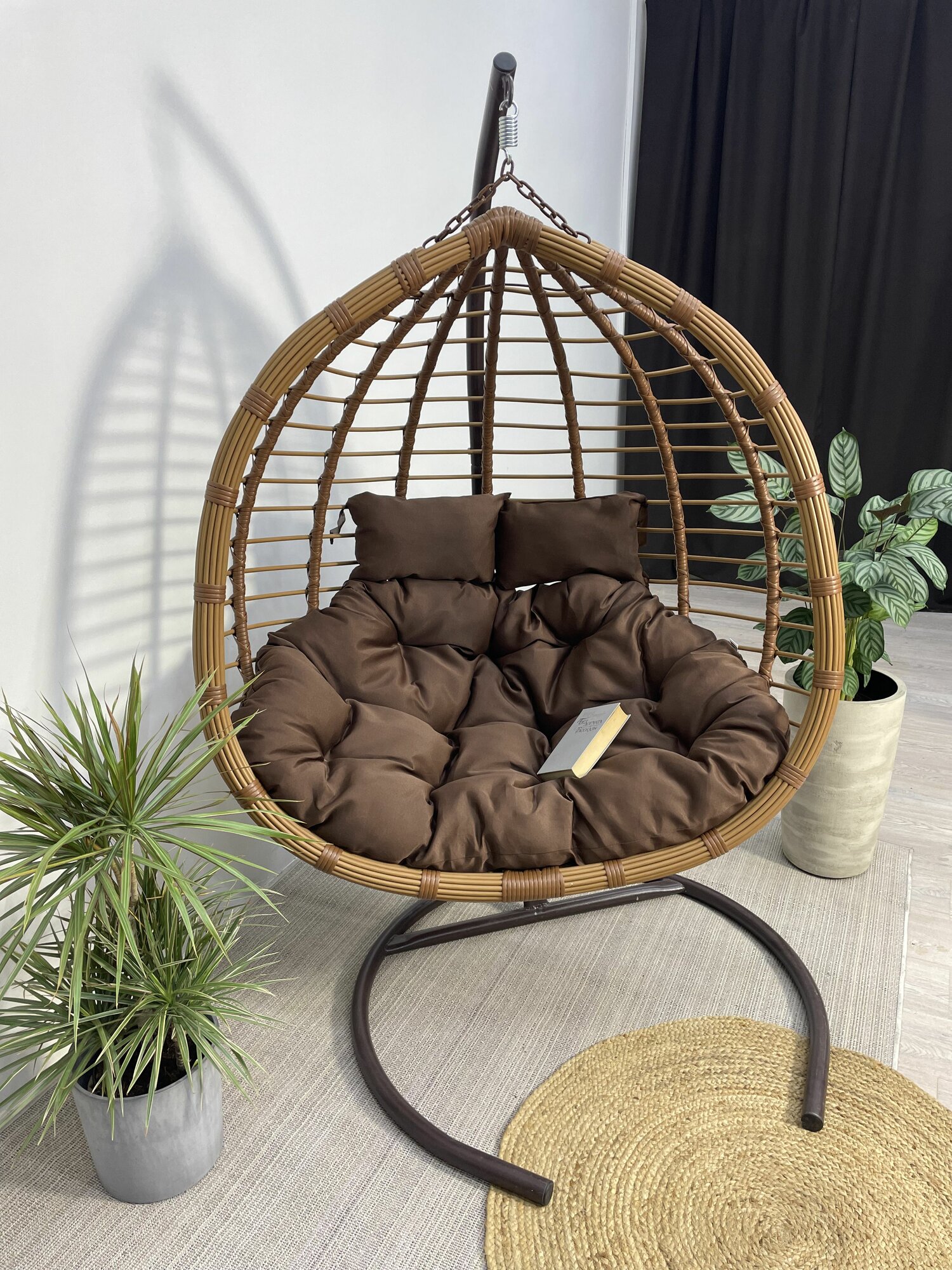 Подвесное двухместное кресло-кокон HASTA горячий шоколад + каркас (коричневая подушка, полиэстер): сравнение цен, характеристики, фото, актуальное наличие и цены.
