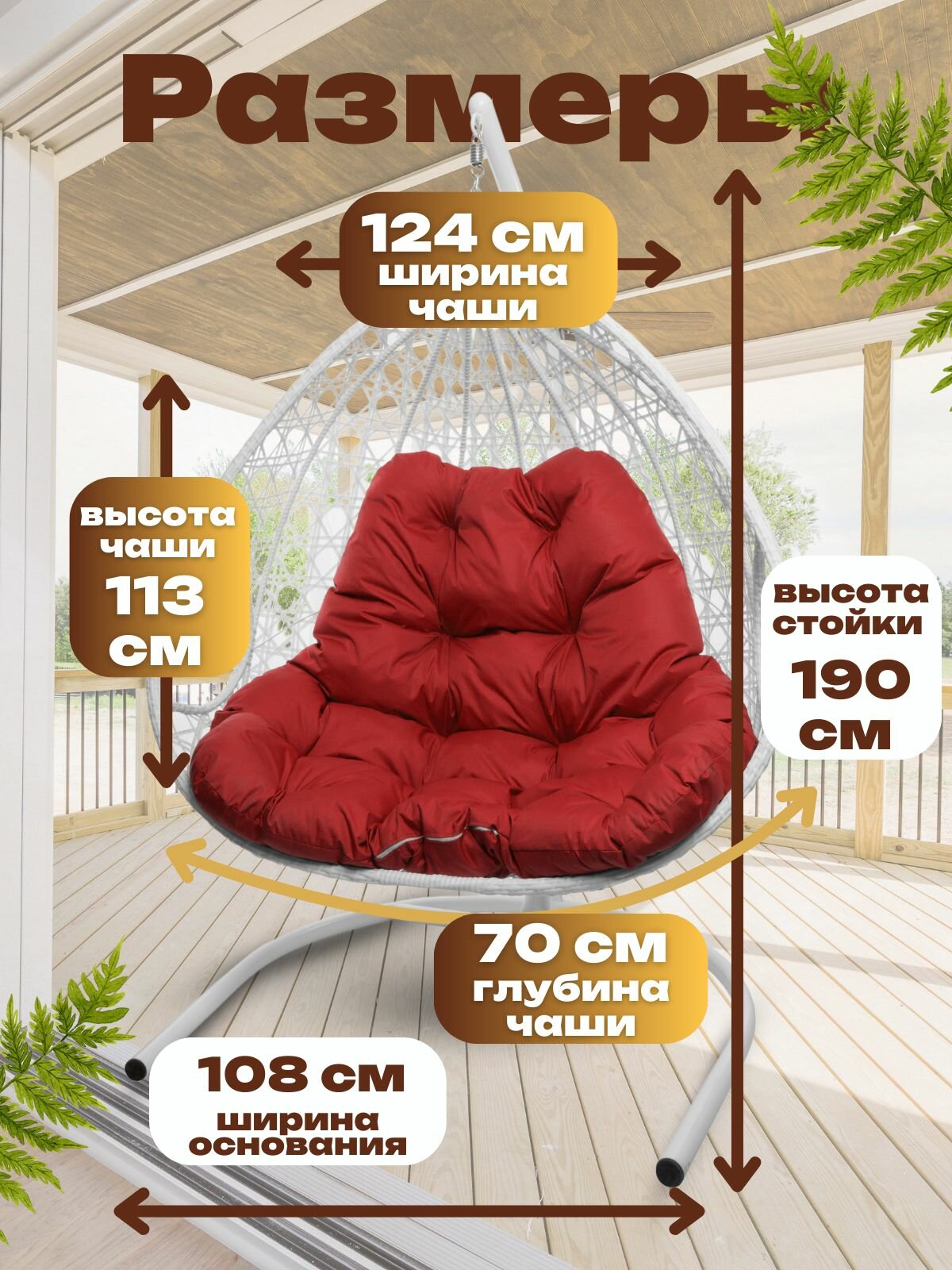Подвесное кресло для двоих люкс с ротангом белое, красная подушка: сравнение цен, характеристики, фото, актуальное наличие и цены.