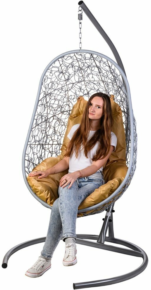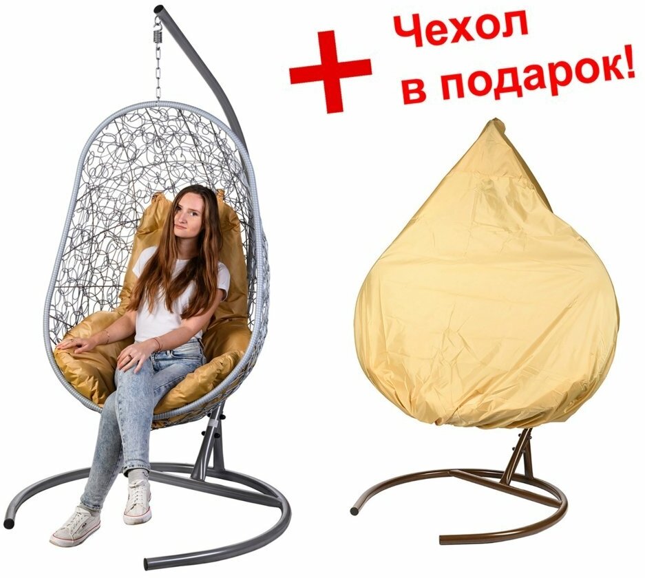 Подвесное кресло Bigarden Easy, серое с бежевой подушкой, влагостойкое, до 160кг, 120х80х75см: сравнение цен, характеристики, фото, актуальное наличие и цены.
