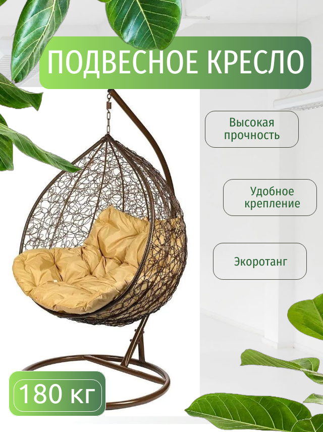 Купить Подвесное кресло кокон на стойке двухместное»Джемини» (Gemini) коричневое, бежевая продушка, 135х75х195 см до 180 кг. с доставкой по всей России. Подвесное кресло кокон на стойке двухместное»Джемини» (Gemini) коричневое, бежевая продушка, 135х75х195 см до 180 кг.: сравнение цен, характеристики, фото, актуальное наличие и цены.