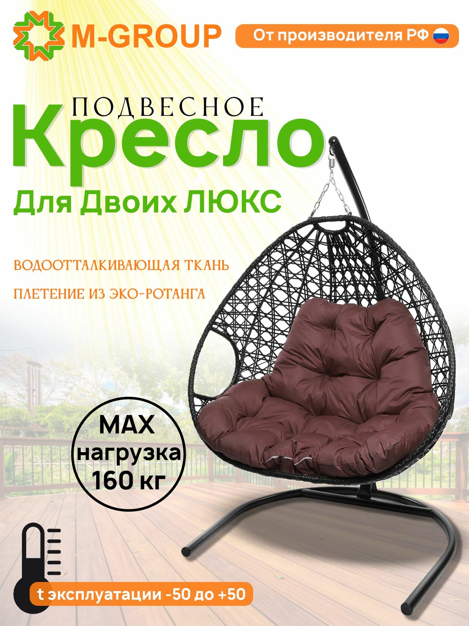 Купить Подвесное кресло для двоих люкс с ротангом чёрное, бордовая подушка с доставкой по всей России.