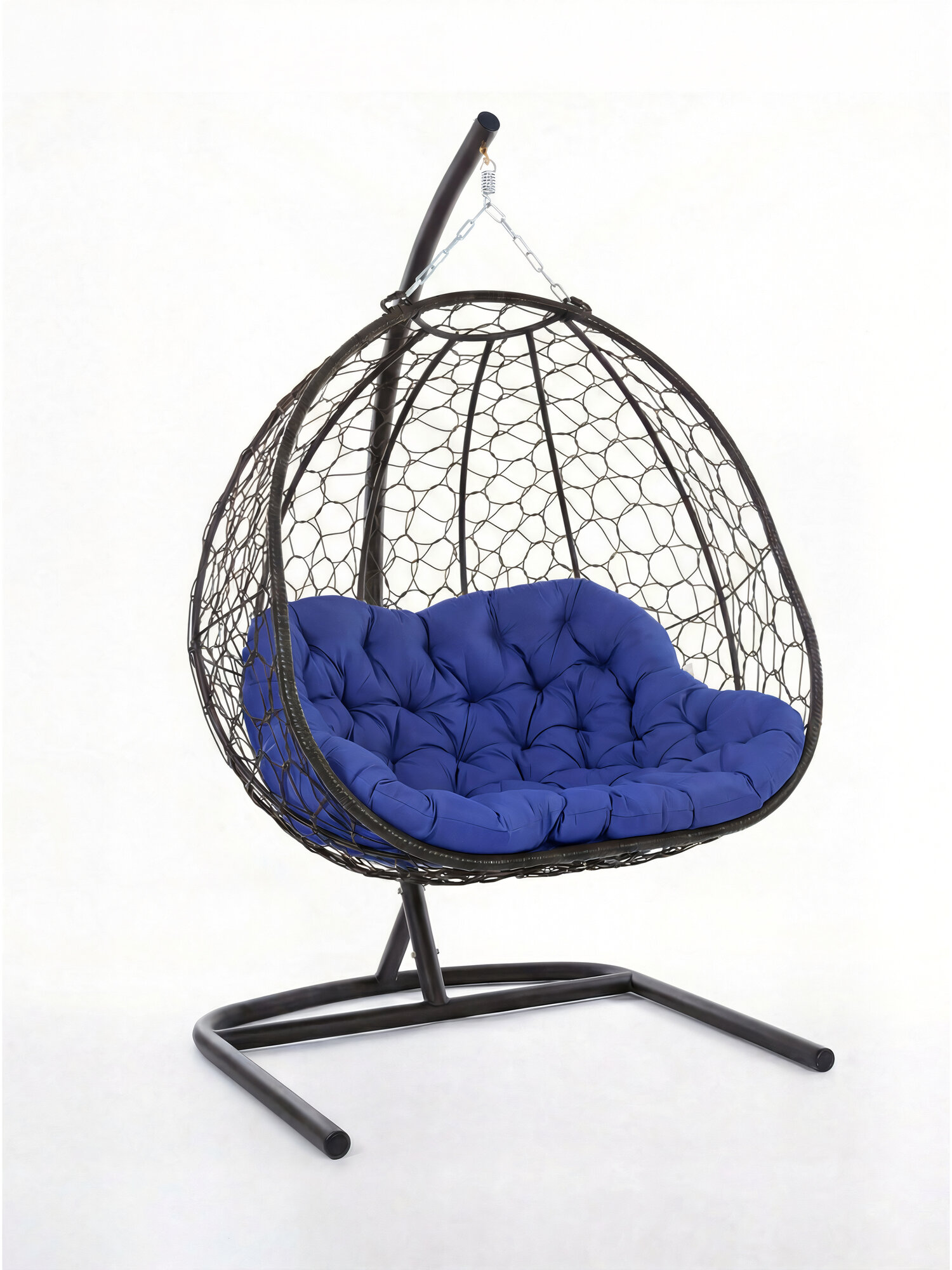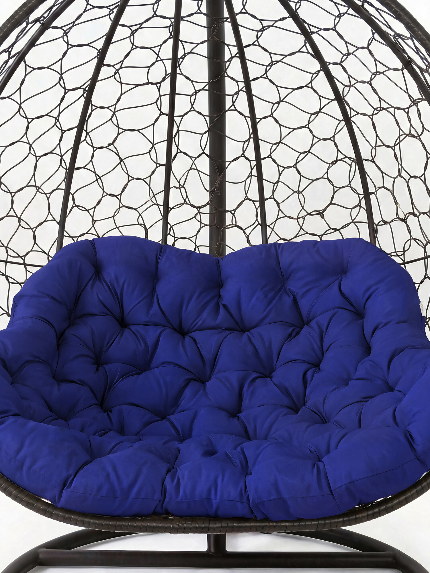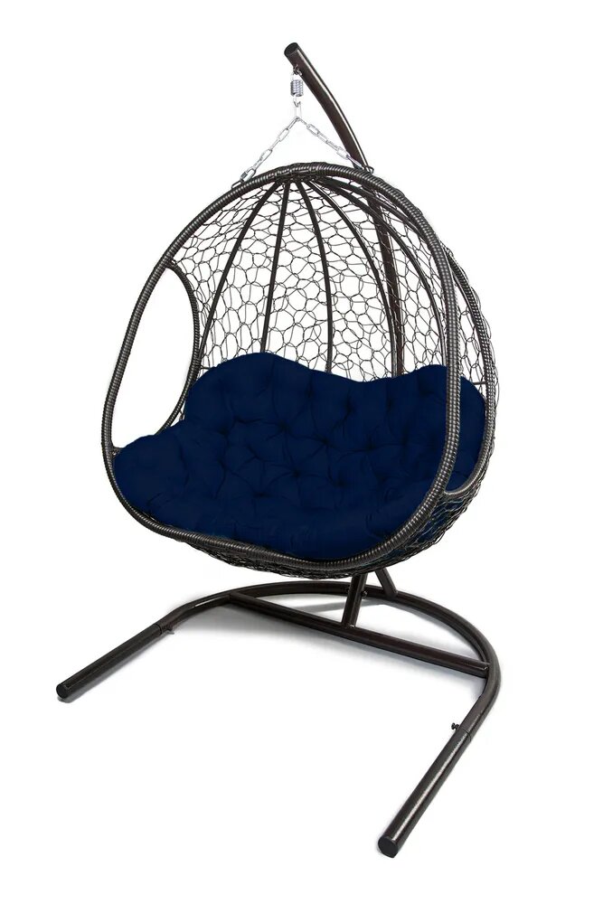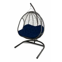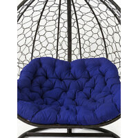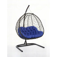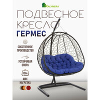 Дизайнерская модель от бренда KALYMERA выполнена в большом размере: ширина основания - 126 см, высота - 200 см, глубина кресла - 80 см. В его комплектацию входят: стойка, плетенная корзина в технике "Паутинка" размером 126х80х126см, мягкая подушка синего цвета, изготовленная из 100% полиэстера.