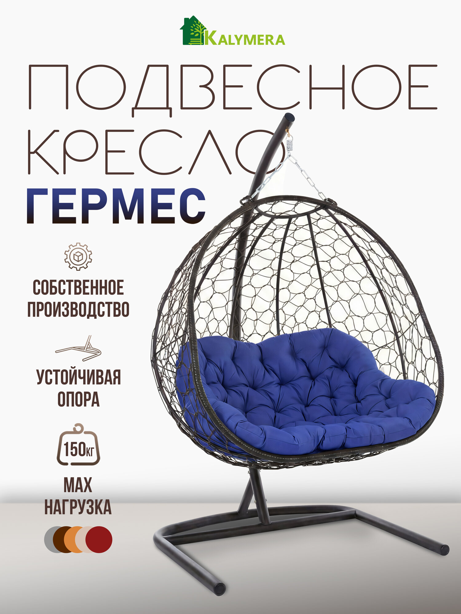 Подвесное кресло гермес с опорой – это стильное и комфортное кресло из искусственного ротанга темно-коричневого цвета, идеальное решение для отдыха дома, в саду, на веранде или дачной террасе.