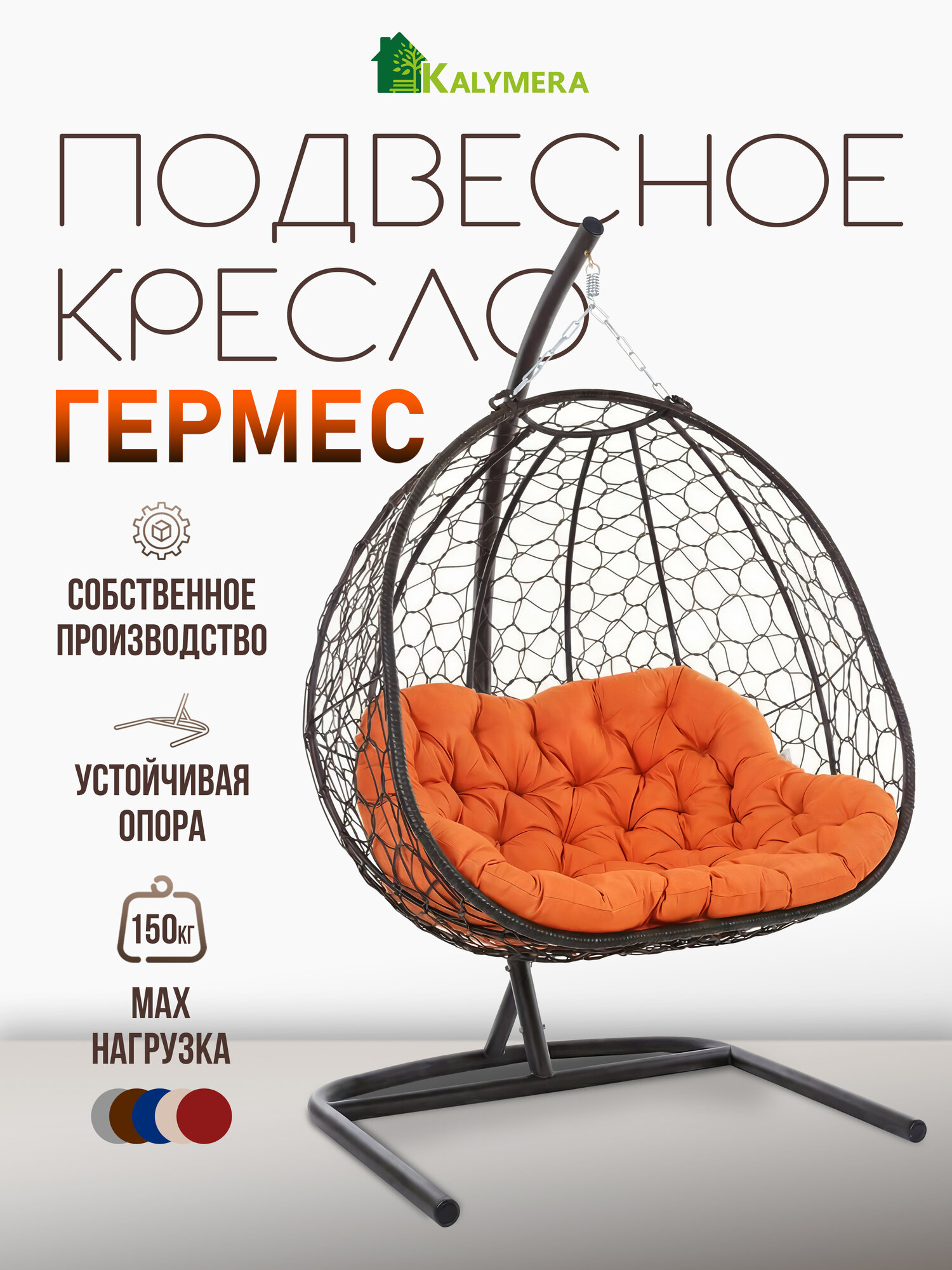 Подвесное кресло гермес с опорой – это стильное и комфортное кресло из искусственного ротанга темно-коричневого цвета, идеальное решение для отдыха дома, в саду, на веранде или дачной террасе.