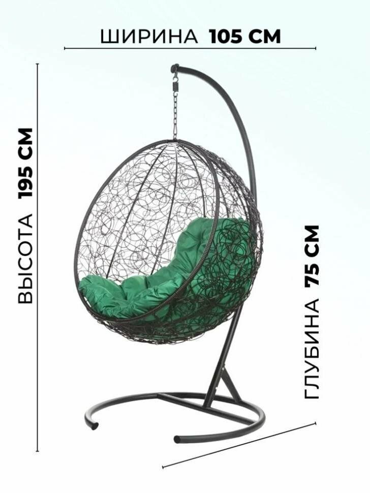 Подвесное кресло из ротанга Kokos Black, металл, с зеленой подушкой: сравнение цен, характеристики, фото, актуальное наличие и цены.