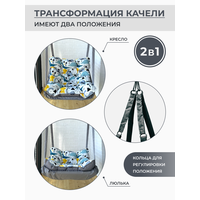 Качели для дачи, дома, улицы бренда Bag Life созданы на профессиональном оборудовании из качественных материалов. Подвесные качели садовые имеют 2 положения: лежа и сидя. Качели гамак благодаря регулировке наклона спинки очень удобны и комфортны для детей ростом до 140 см, дачные качели могут трансформироваться из уютного кресла в люльку. Качели гнездо (кокон) можно использовать: дома, на даче, на улице, брать с собой на природу. Качели садовые прекрасно впишутся в интерьер сада или дачи. У дачных квадратных качелей очень удобная и простая система крепления. Качели гамак (люлька) состоят: каркас изготовлен из металлической профильной трубы, выдерживает вес до 100 кг, съемное основание, двухстороний матрас сшит из ткани Оксфорд (уличного типа, водонепроницаемая), и мебельная ткань Велюр. Рекомендуется стирать в стиральной машине при 30 градусах в режиме "Деликатная стирка", прочные стропы, карабины и кольца. Яркий принт будет радовать вас не один год!