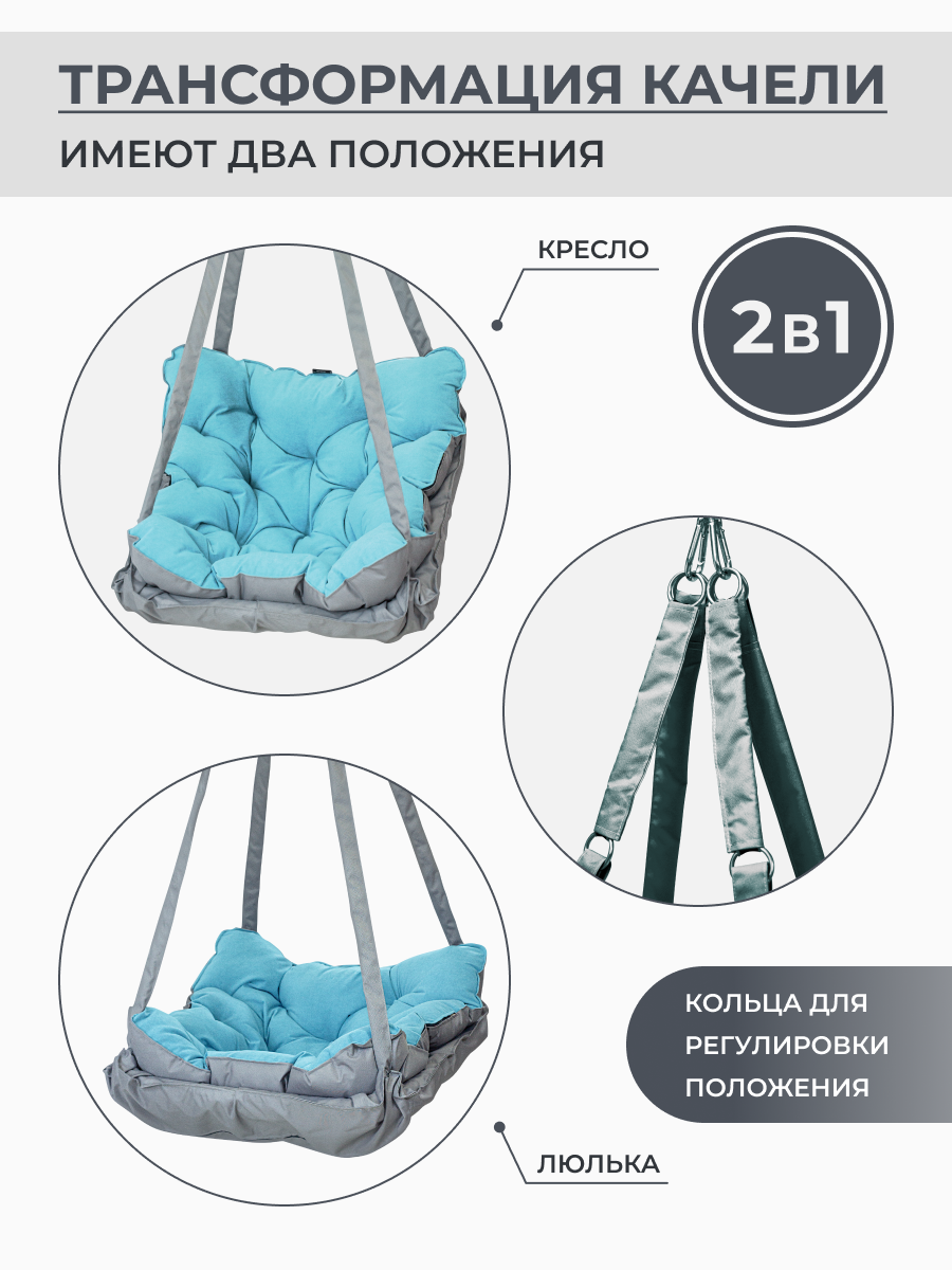 Качели для дачи, дома, улицы бренда Bag Life созданы на профессиональном оборудовании из качественных материалов. Подвесные качели садовые имеют 2 положения: лежа и сидя. Качели гамак благодаря регулировке наклона спинки очень удобны и комфортны для детей ростом до 140 см, дачные качели могут трансформироваться из уютного кресла в люльку. Качели гнездо (кокон) можно использовать: дома, на даче, на улице, брать с собой на природу. Качели садовые прекрасно впишутся в интерьер сада или дачи. У дачных квадратных качелей очень удобная и простая система крепления. Качели гамак (люлька) состоят: каркас изготовлен из металлической профильной трубы, выдерживает вес до 100 кг, съемное основание, двухстороний матрас сшит из ткани Оксфорд (уличного типа, водонепроницаемая), и мебельная ткань Велюр. Рекомендуется стирать в стиральной машине при 30 градусах в режиме "Деликатная стирка", прочные стропы, карабины и кольца. Яркий принт будет радовать вас не один год!
