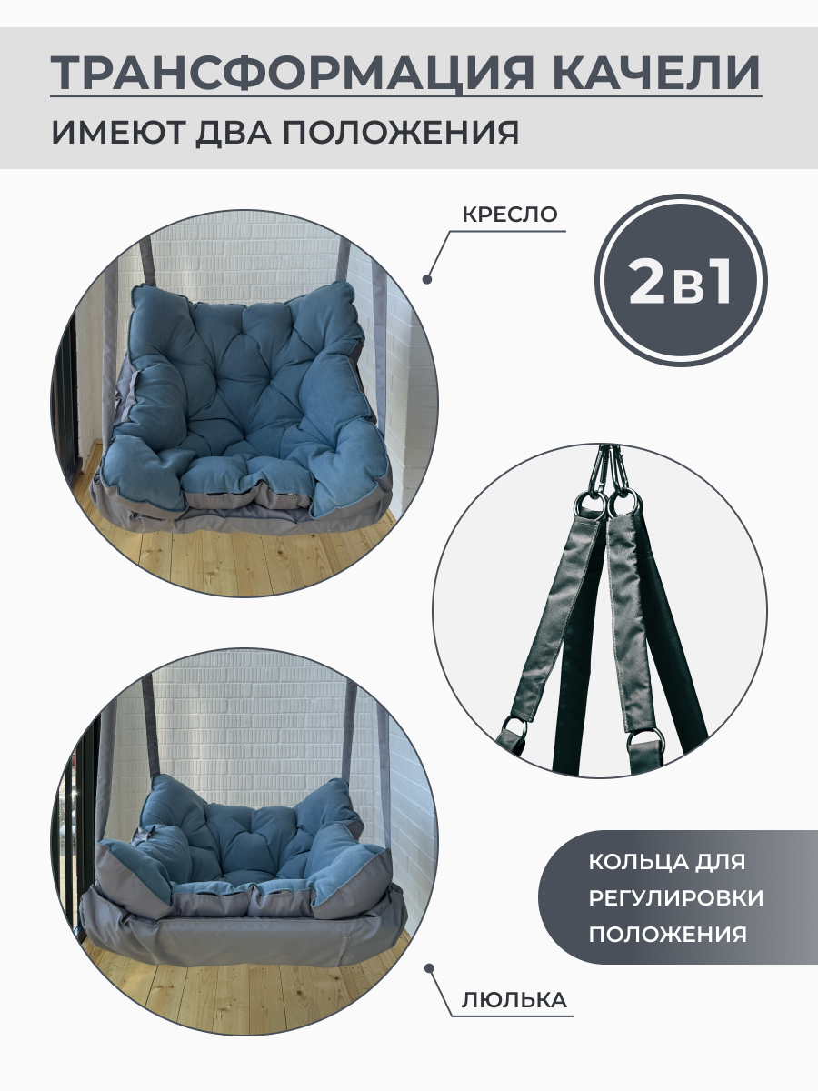 Качели для дачи, дома, улицы бренда Bag Life созданы на профессиональном оборудовании из качественных материалов. Подвесные качели садовые имеют 2 положения: лежа и сидя. Качели гамак благодаря регулировке наклона спинки очень удобны и комфортны для детей ростом до 140 см, дачные качели могут трансформироваться из уютного кресла в люльку. Качели гнездо (кокон) можно использовать: дома, на даче, на улице, брать с собой на природу. Качели садовые прекрасно впишутся в интерьер сада или дачи. У дачных квадратных качелей очень удобная и простая система крепления. Качели гамак (люлька) состоят: каркас изготовлен из металлической профильной трубы, выдерживает вес до 100 кг, съемное основание, двухстороний матрас сшит из ткани Оксфорд (уличного типа, водонепроницаемая), и мебельная ткань Велюр. Рекомендуется стирать в стиральной машине при 30 градусах в режиме "Деликатная стирка", прочные стропы, карабины и кольца. Яркий принт будет радовать вас не один год!