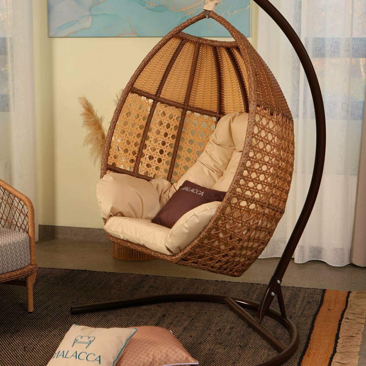 | Подробная комплектация | Кресло кокон Авиано - 1 шт, подушка-матрас 1 шт, стойка -1 шт, комплект креплений - 1шт, декоративный чехол на крепления |