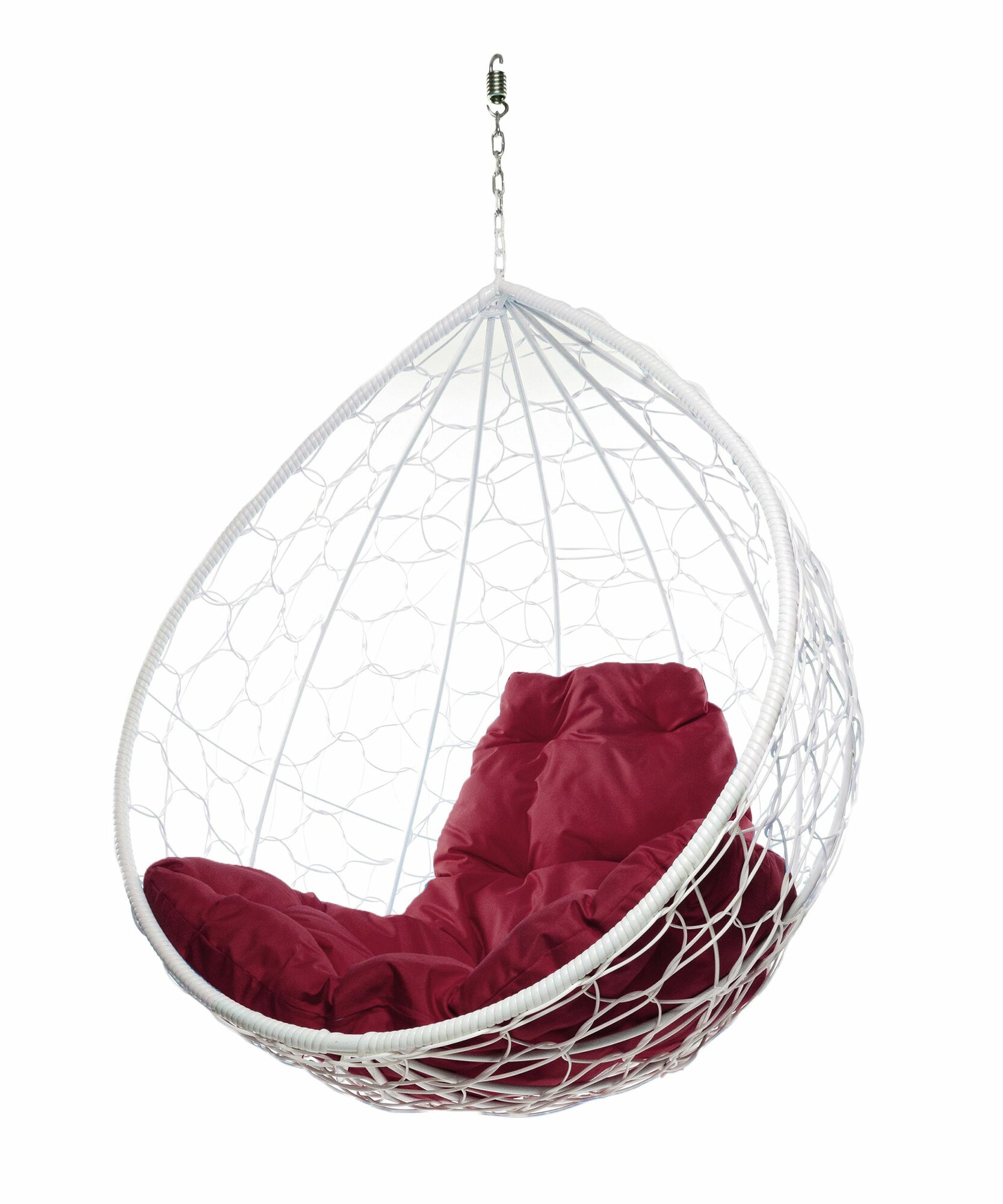 Купить Подвесное кресло капля (без стойки), с ротангом белое, бордовая подушка с доставкой по всей России.