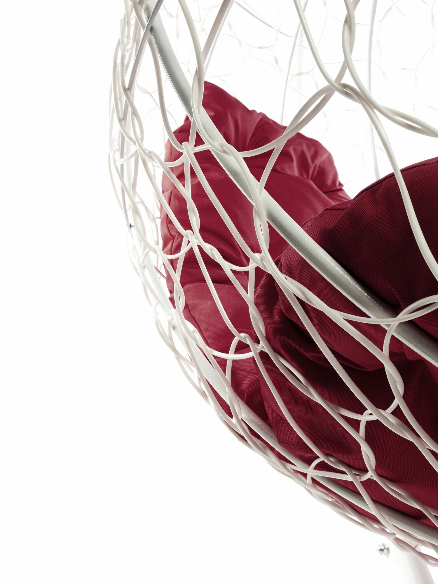 Подвесное кресло кокон Smile Ажур 175х105х63см. Усиленная стойка до 200 кг Белый, подушка трапеция Красный.