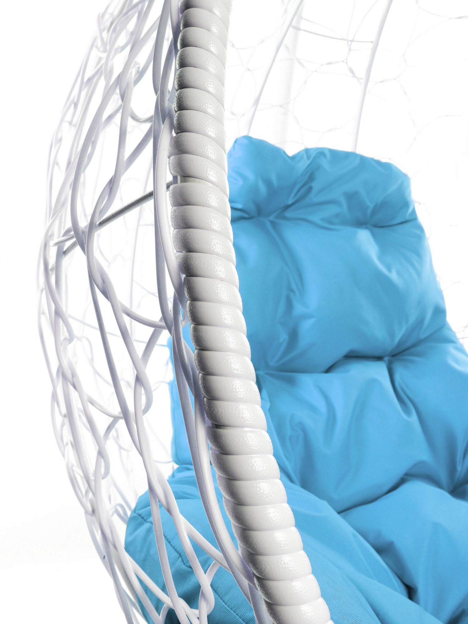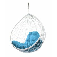 Купить Подвесное кресло капля (без стойки), с ротангом белое, голубая подушка с доставкой по всей России.