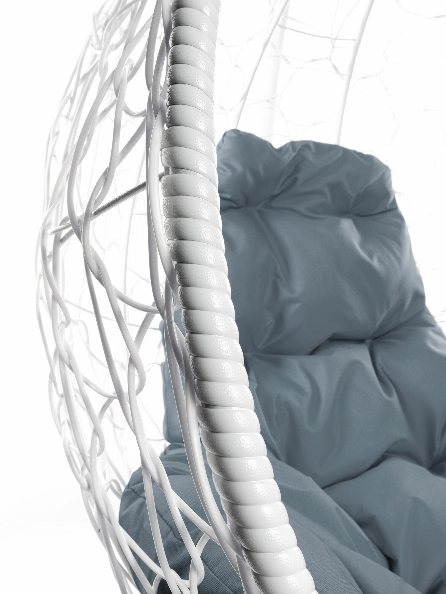 Купить Подвесное кресло капля (без стойки), с ротангом белое, серая подушка с доставкой по всей России.