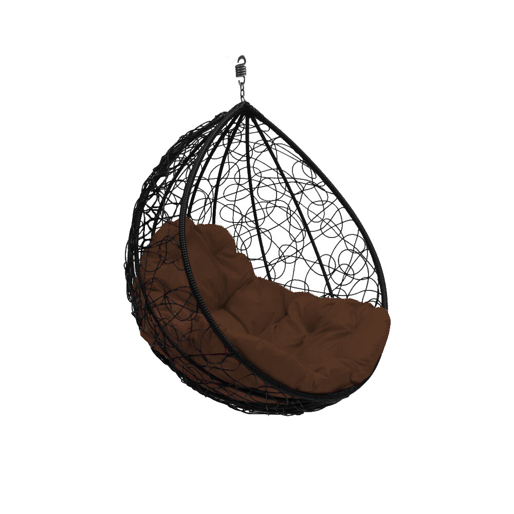 Купить Подвесное кресло капля (без стойки), с ротангом черное, коричневая подушка с доставкой по всей России.