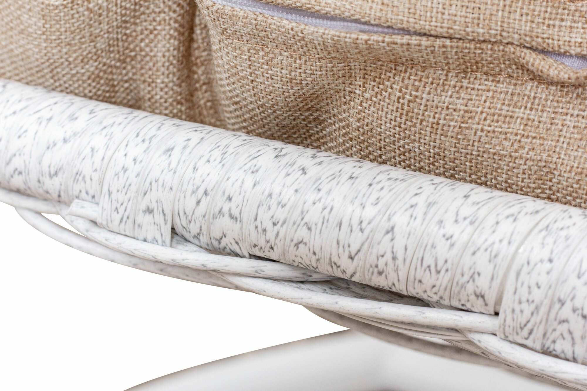 Купить Подвесное кресло капля элит, с ротангом белое, подушка Лен с доставкой по всей России.