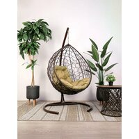 Подвесное кресло с ротангом «Капля» M-Group коричневое с бежевой подушкой