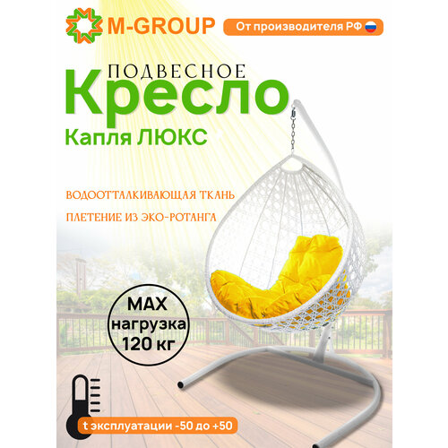 Купить Подвесное кресло капля Люкс белое, желтая подушка с доставкой по всей России.