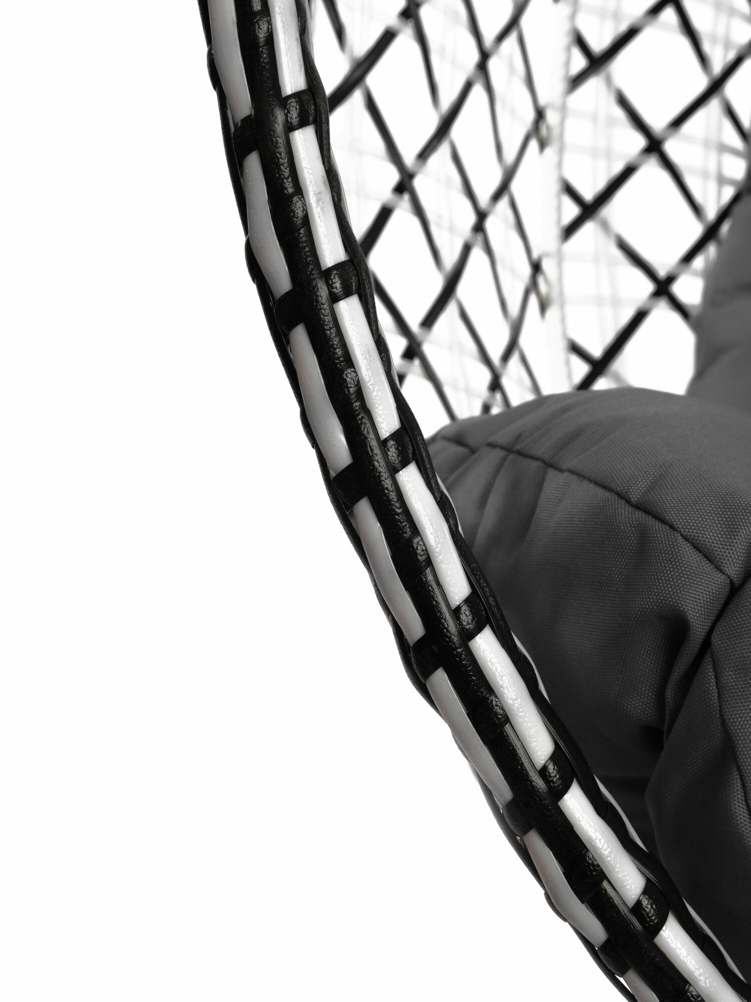 Купить Подвесное кресло капля люкс двухцветное с ротангом, белое/черное, серая подушка с доставкой по всей России. Подвесное кресло капля люкс двухцветное с ротангом, белое/черное, серая подушка: сравнение цен, характеристики, фото, актуальное наличие и цены.