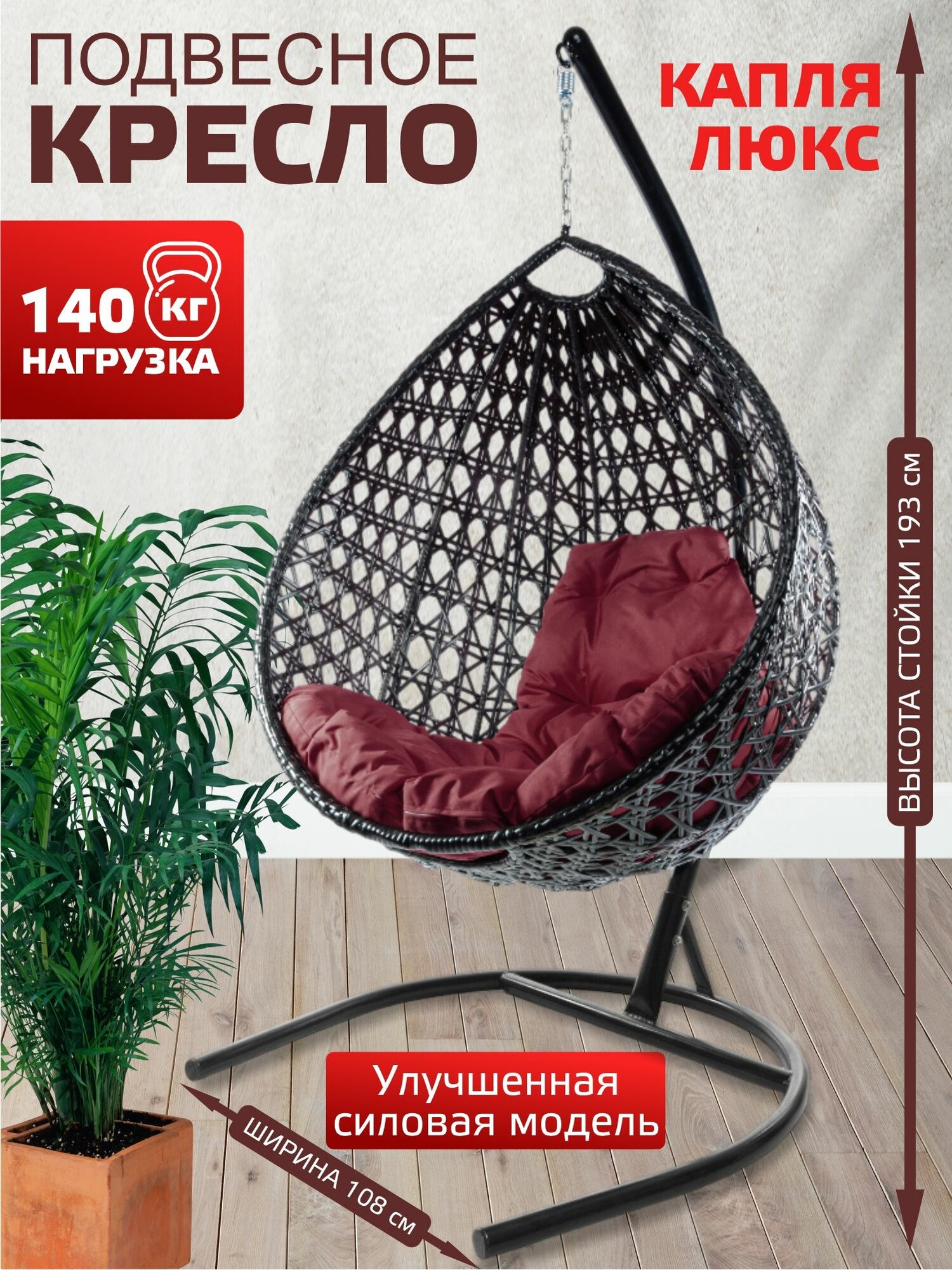 Подвесное кресло капля люкс, с ротангом чёрное, бордовая подушка: сравнение цен, характеристики, фото, актуальное наличие и цены.
