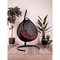 Купить Подвесное кресло капля люкс, с ротангом чёрное, бордовая подушка с доставкой по всей России.