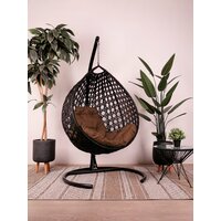 Купить Подвесное кресло капля люкс, с ротангом чёрное, коричневая подушка с доставкой по всей России.