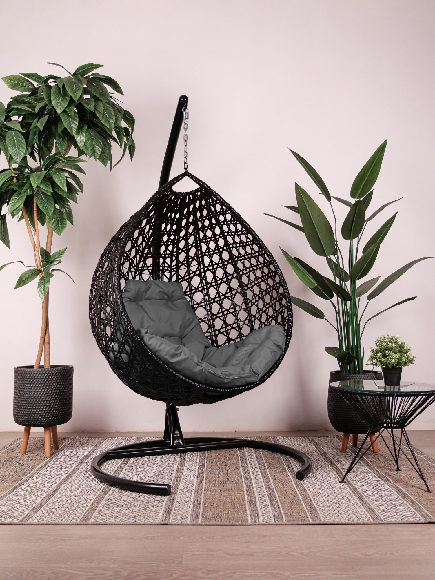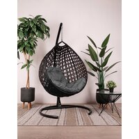 Подвесное кресло капля люкс, с ротангом чёрное, серая подушка
