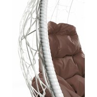Подвесное кресло капля, с ротангом белое, коричневая подушка