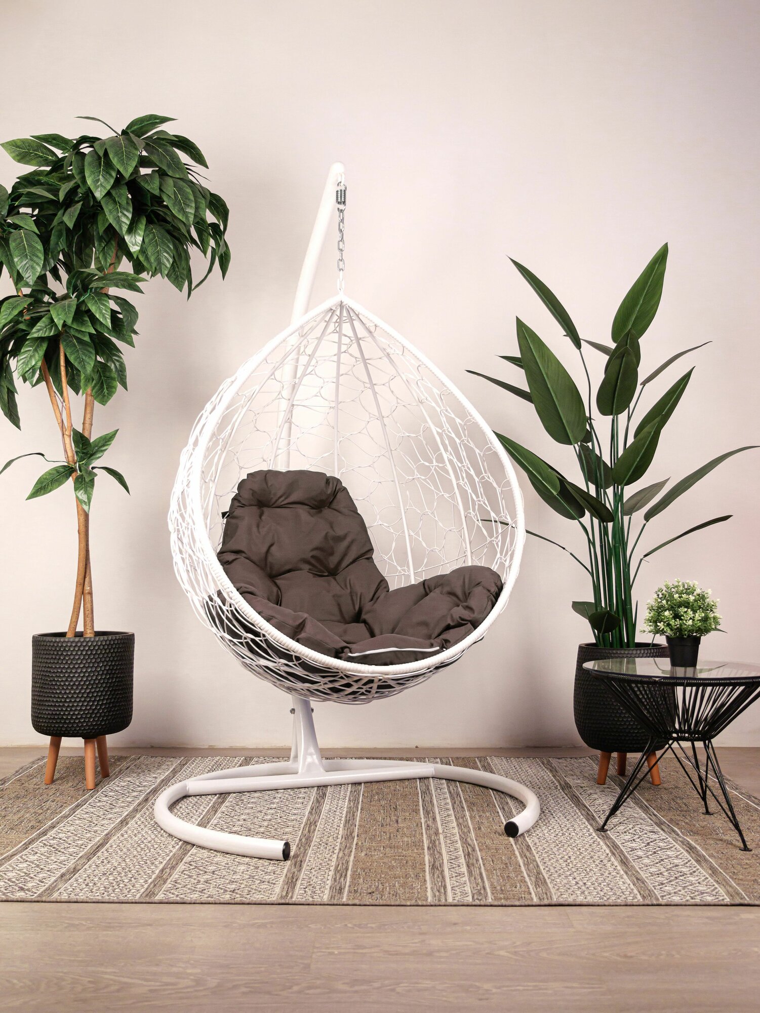 Подвесное кресло капля, с ротангом белое, коричневая подушка: сравнение цен, характеристики, фото, актуальное наличие и цены.