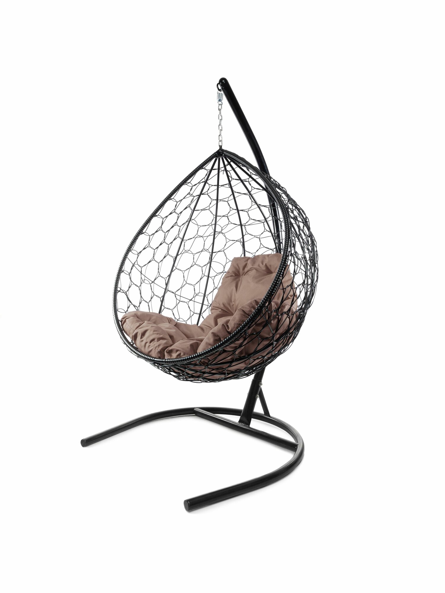 Купить Подвесное кресло капля, с ротангом чёрное, коричневая подушка с доставкой по всей России.
