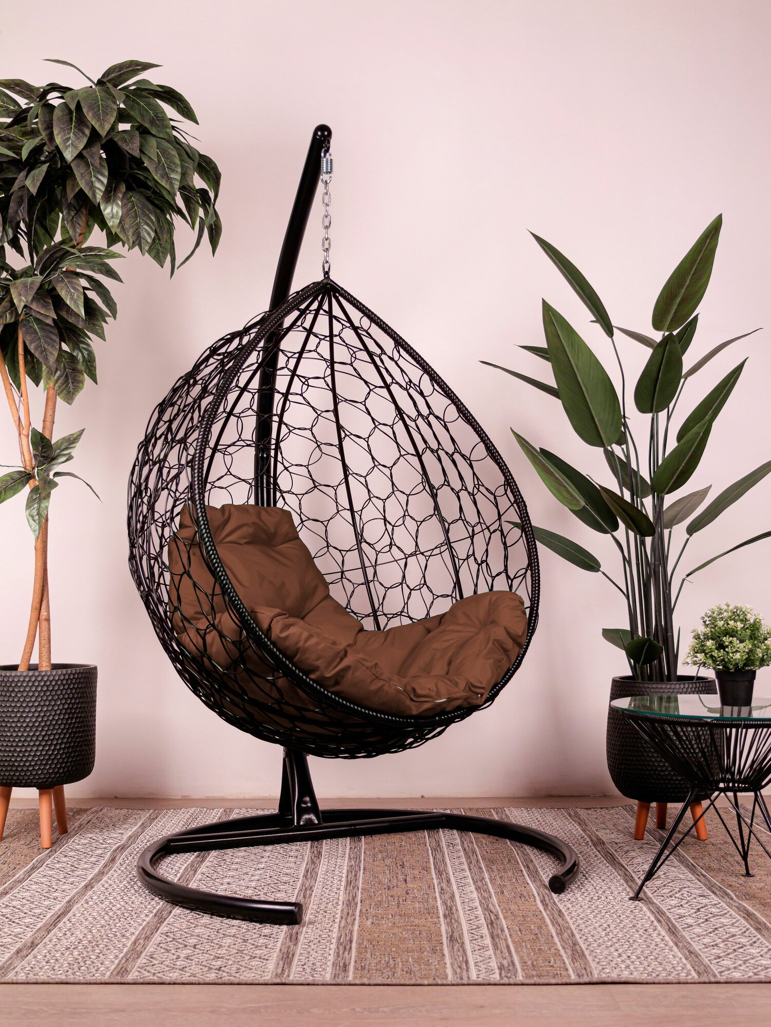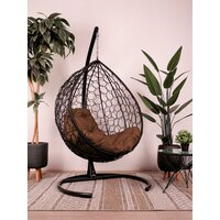 Подвесное кресло капля, с ротангом чёрное, коричневая подушка