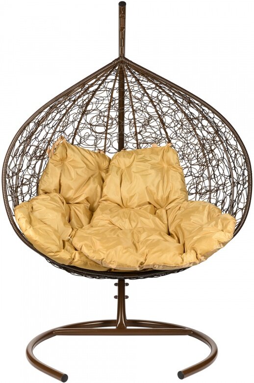 Купить Подвесное кресло кокон двухместное BIGARDEN Gemini brown, искусственный ротанг, сталь с доставкой по всей России.