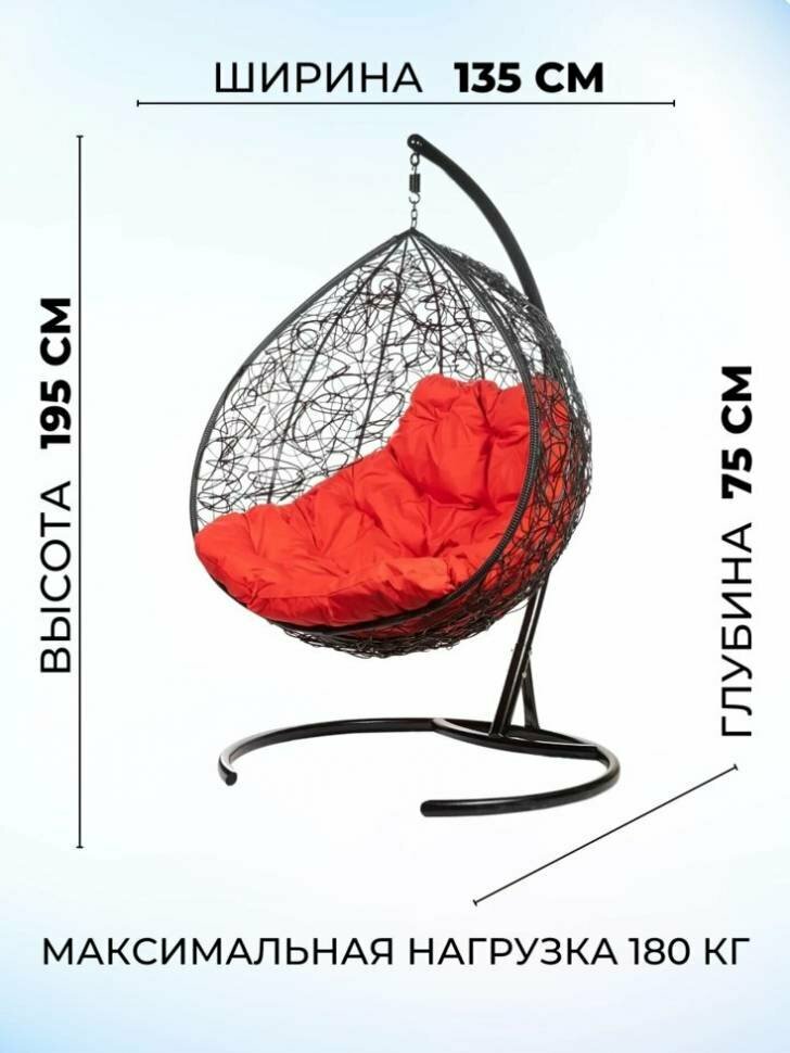 Подвесное кресло кокон двухместное BIGARDEN «Gemini promo» black, красная подушка: сравнение цен, характеристики, фото, актуальное наличие и цены.
