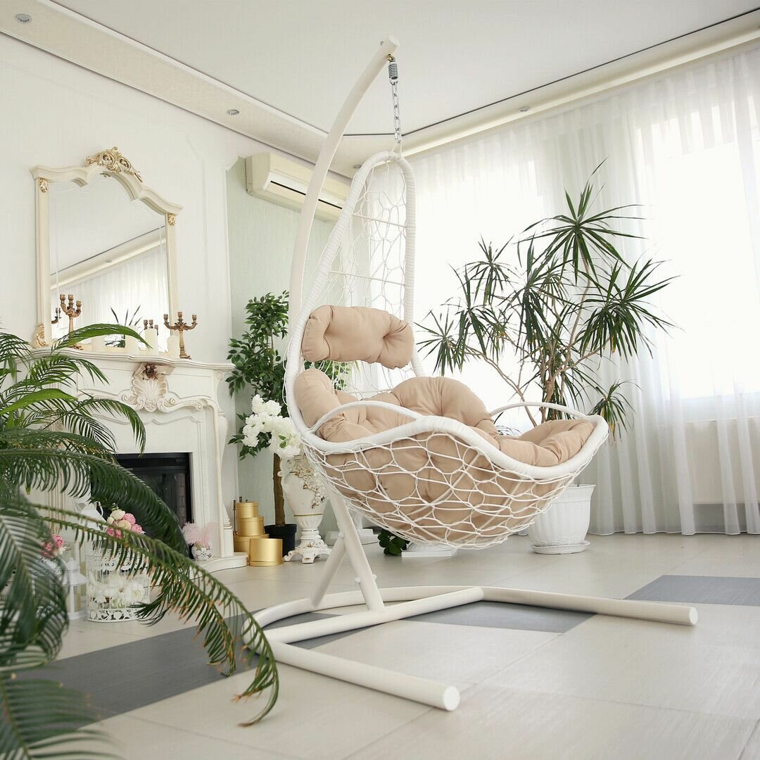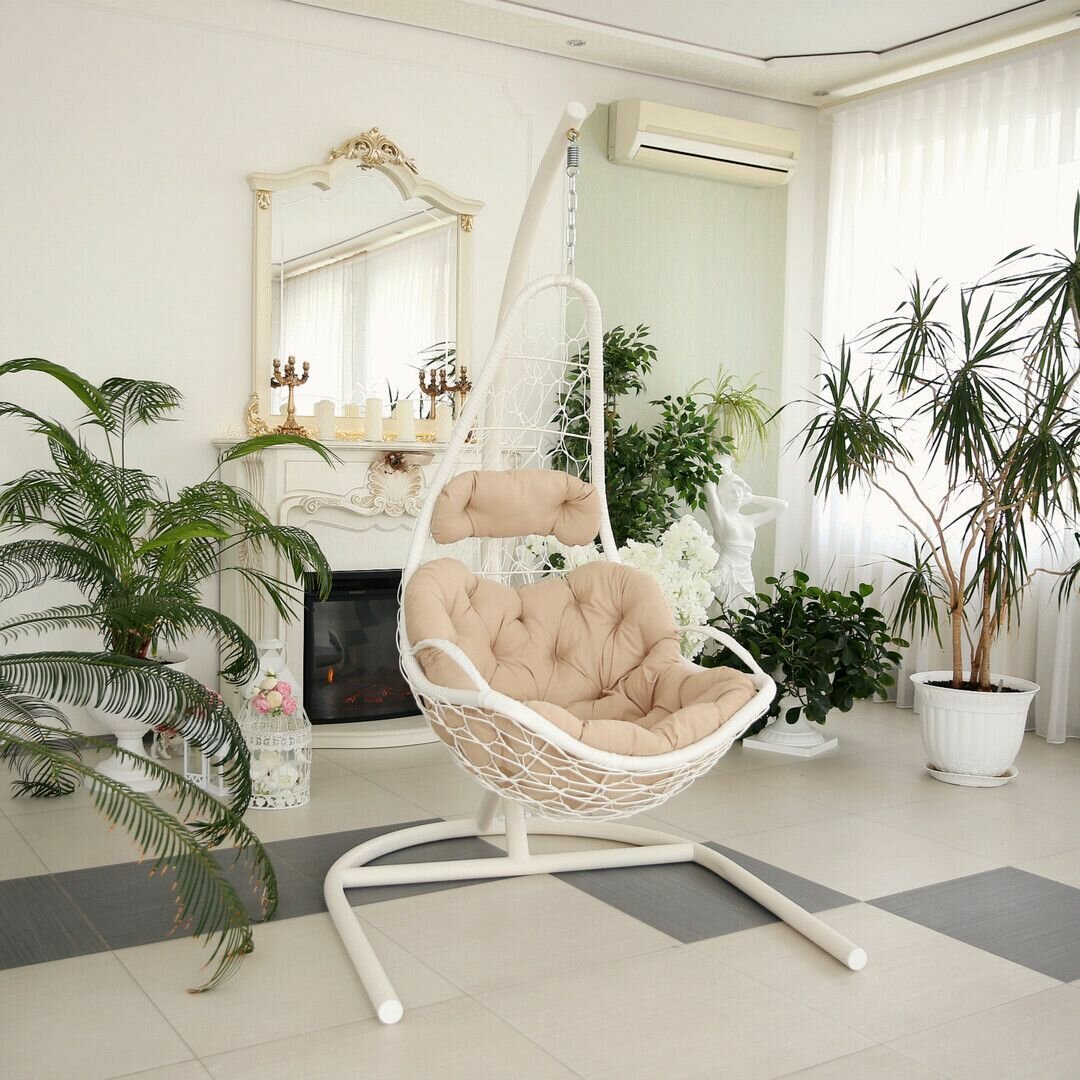 Купить Подвесное кресло-кокон «релакс» цвет кокона: Белый; цвет подушки: Бежевый В*Ш*Г(124*73*75) с доставкой по всей России.