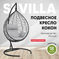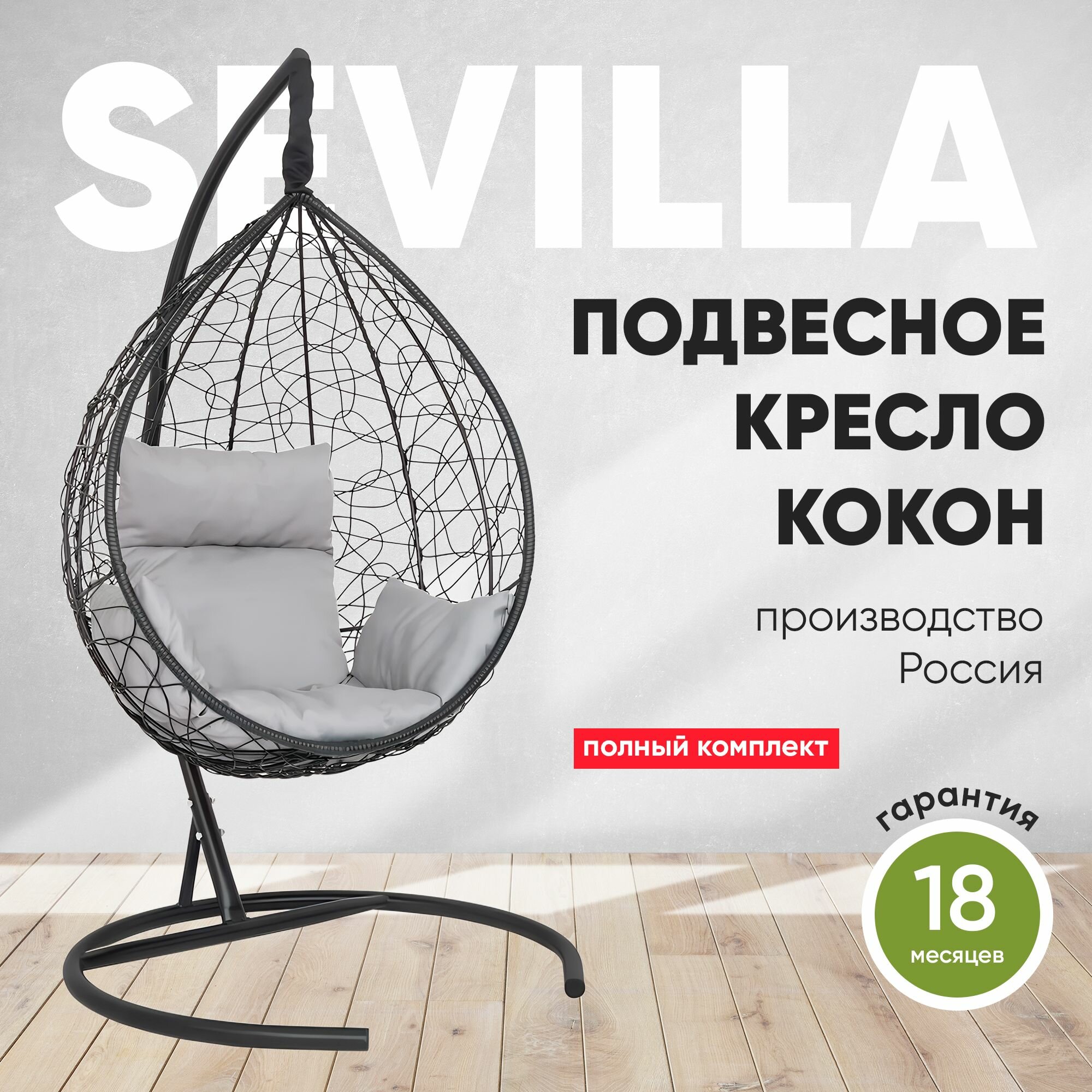 Купить Подвесное кресло-кокон SEVILLA черный + каркас (светло-серая подушка) с доставкой по всей России. Подвесное кресло-кокон SEVILLA черный + каркас (светло-серая подушка): сравнение цен, характеристики, фото, актуальное наличие и цены.