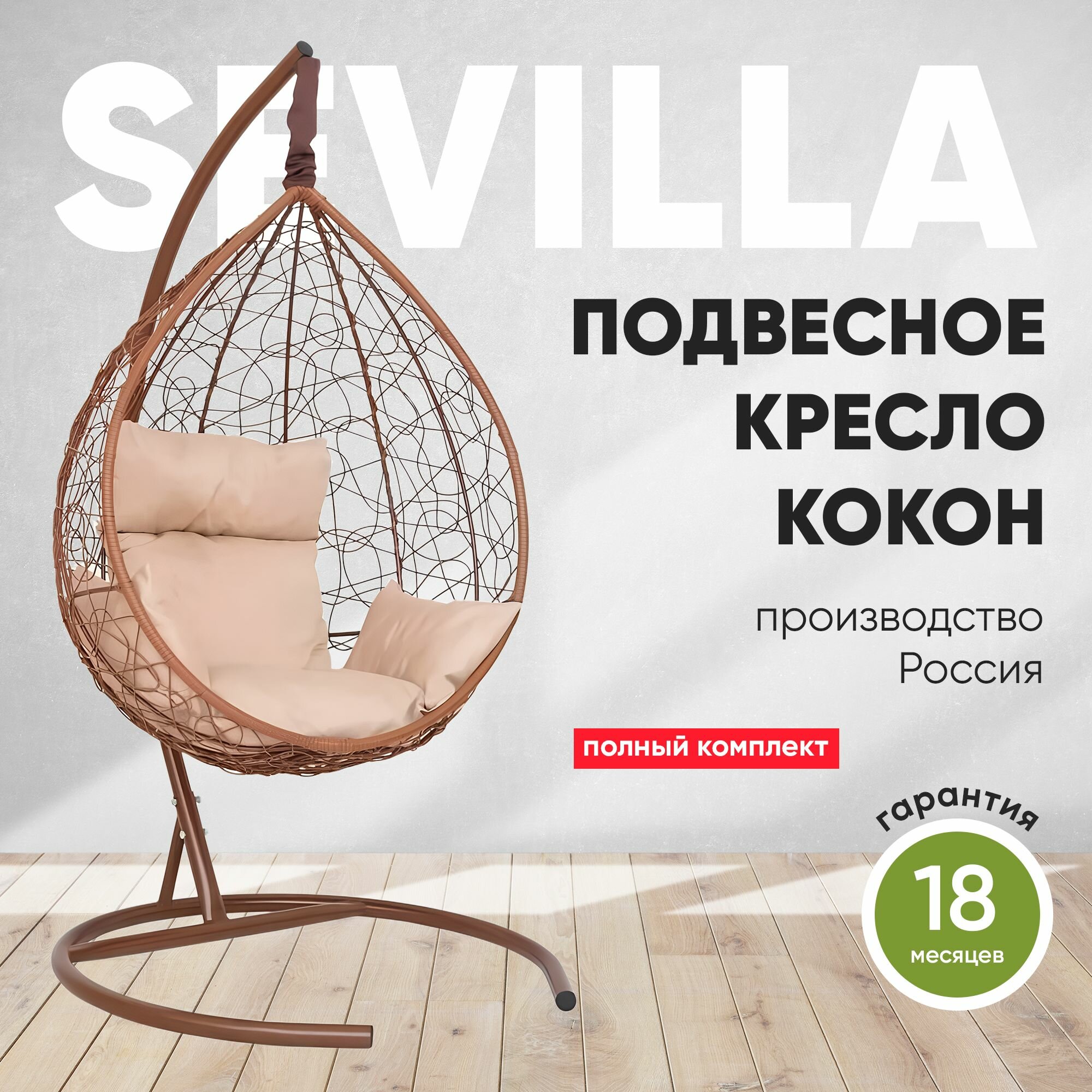 Купить Подвесное кресло-кокон SEVILLA горячий шоколад + каркас (бежевая подушка) с доставкой по всей России. Подвесное кресло-кокон SEVILLA горячий шоколад + каркас (бежевая подушка): сравнение цен, характеристики, фото, актуальное наличие и цены.