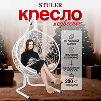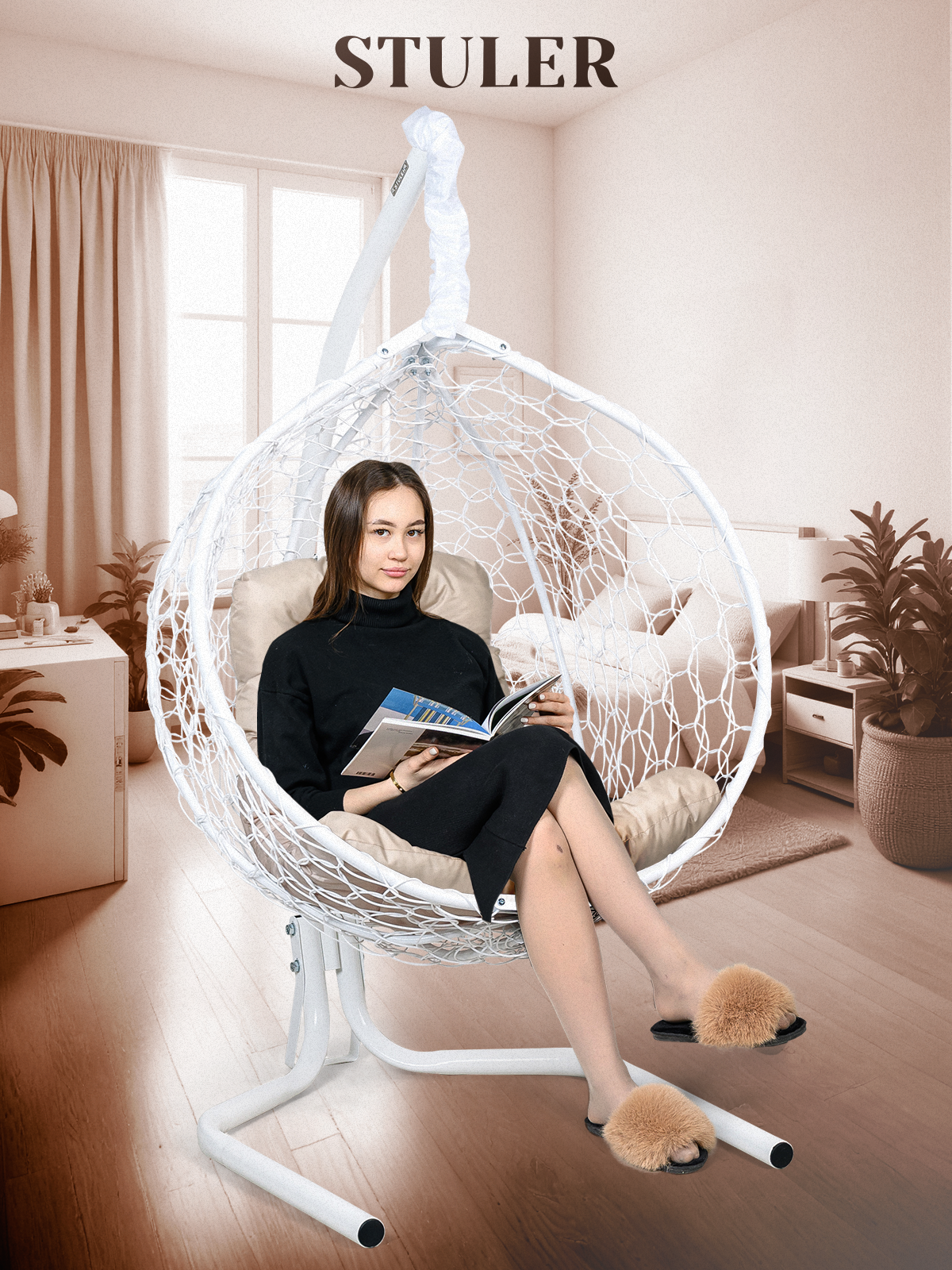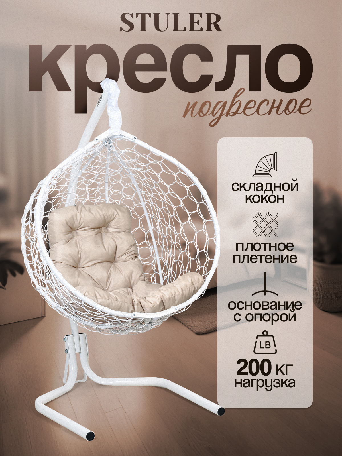 Подвесное кресло-кокон STULER Smile Белый с бежевой подушкой-трапецией, 175 х 63 х 105 см для дачи и сада: сравнение цен, характеристики, фото, актуальное наличие и цены.