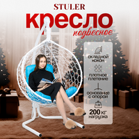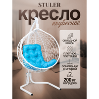 Купить Подвесное кресло-кокон STULER Smile Белый с голубой подушкой-трапецией, 175 х 63 х 105 см для дачи и сада с доставкой по всей России.